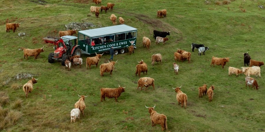 Neale and Janet McQuiston are the amiable hosts at Kitchen Coos and Ewes and have created farm tours and experiences to let you see and interact with Highland cows and Beltex sheep in their natural, farm environment.